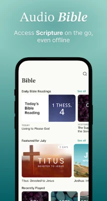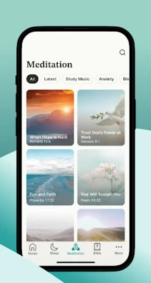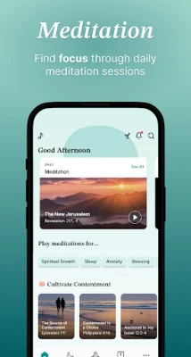 • Immerse yourself in Bible scripture with guided meditations designed to help you relax and reflect.