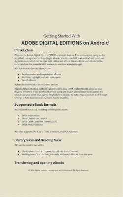 One eBook reader for all your Adobe DRM protected books across your Android Devices, iPad, Mac or PC. Adobe Digital Editions (ADE) is free-to-download and use, and completely ad-free. Use it to read EPUB and PDF books, both online and offline. Borrow ebooks from many public libraries for use with ADE. Extend your reading experience by transferring books from your personal computer to your Android devices. Organize your books into a beautiful custom library.