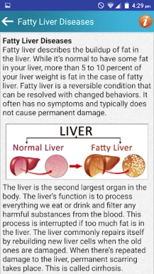 Fatty Liver Diet & Health Tips is a Free App for android mobile devices that provides all diet tips and help information about fatty liver or hepatic steatosis. The liver is one of the largest organ in the body. The liver commonly repairs itself by rebuilding new liver cells when the old ones are damaged. When there’s repeated damage to the liver, permanent scarring occurs.