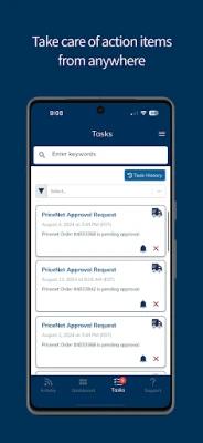 • Take care of action items from anywhere, including Maintenance PO approval, stock purchase approval, and PriceNet order approval.