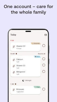 💡 Easy to set up: Simply type your medication or search our drug database to create your personal medicine reminder. Set different times for weekends—perfect for anyone needing a reliable reminder app.