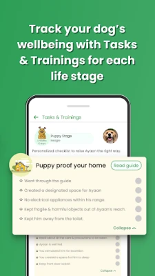 đŸPet Journey- feature provides pet parents with step-by-step tasks on every stage of dog life according to your dogs age and breed.