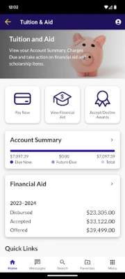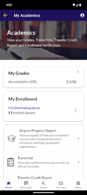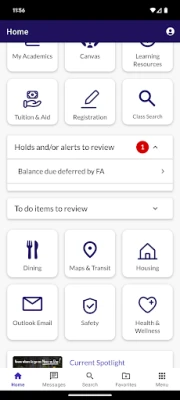 • Students see important information leading to their student success like class schedule, grades, learning resources, holds and alerts, financial aid, and more.