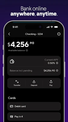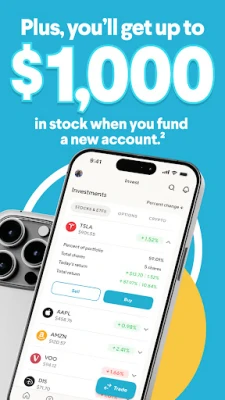 Mobile banking and investing made easy. Send money instantly, deposit checks digitally, pay bills online, track spending with budgeting tools, save cash in high-yield accounts, and trade stocks with no commission (other fees apply).